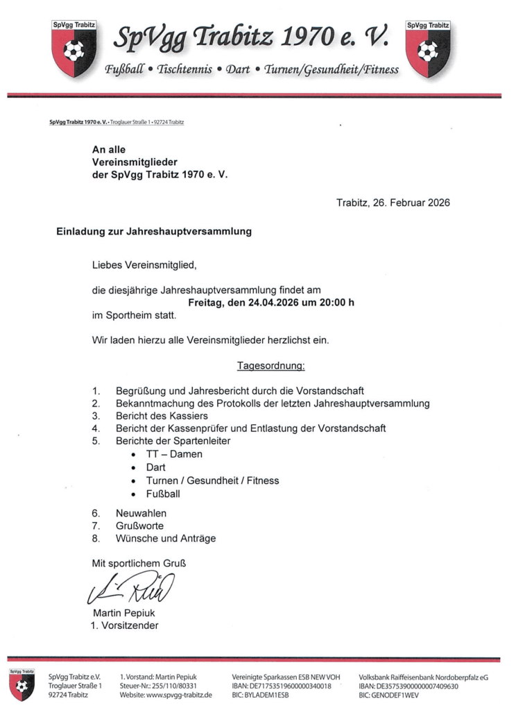 Jahreshauptversammlung am Freitag, den 24.04.2026
